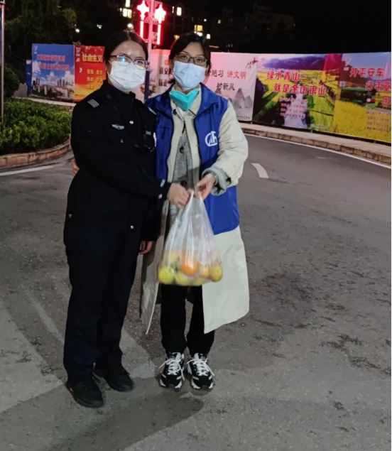 隨時(shí)可以感受到的抗疫愛心“勇動(dòng)”??偛坑须y,分公司支援。公司黨委心系卡點(diǎn)值守志愿者,面對(duì)著防疫物資緊缺的情況,火速聯(lián)系分公司為大家配備了防護(hù)服、N95口罩、手套、酒精消毒噴霧、免洗手凝膠等防疫物資,為疫情防控提供了強(qiáng)有力的防疫保障;莫名的小姐姐親自送桔子到卡點(diǎn),輕聲細(xì)語的一句“你們辛苦了”,聽著暖心啊!百貨店店員送來的礦泉水,喝著心里真甜!值守人員將隨身攜帶的一盒降壓藥給因?qū)嵤┓饪囟荒芡獬鲑徺I的小伙子救急,小伙子到商店買了一包香煙硬要塞給我們的值守人員,還不好意思地說:“太謝謝你了”!一個(gè)非要讓收下,一個(gè)非不愿收,二人相互推辭著……幸福感爆棚啦!用香煙表示感謝,在我看來或許是吸煙人士之間在這個(gè)特殊時(shí)期最普通但卻是最真摯的表達(dá)吧!工作人員親手為卡點(diǎn)值守志愿者送來愛心工作餐;一群不知名的小伙子們積極主動(dòng)加入民兵志愿者和我們工作人員的隊(duì)伍,一起完成了近1600份政府為住戶們配送的生活物資后,悄然離開……。